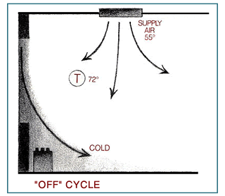 "OFF" CYCLE When heat is Off, the draft barrier is gone. The result. Tenants and employees complain about insufficient heat, which in turn leads to higher temperature settings and higher heating bibs.
